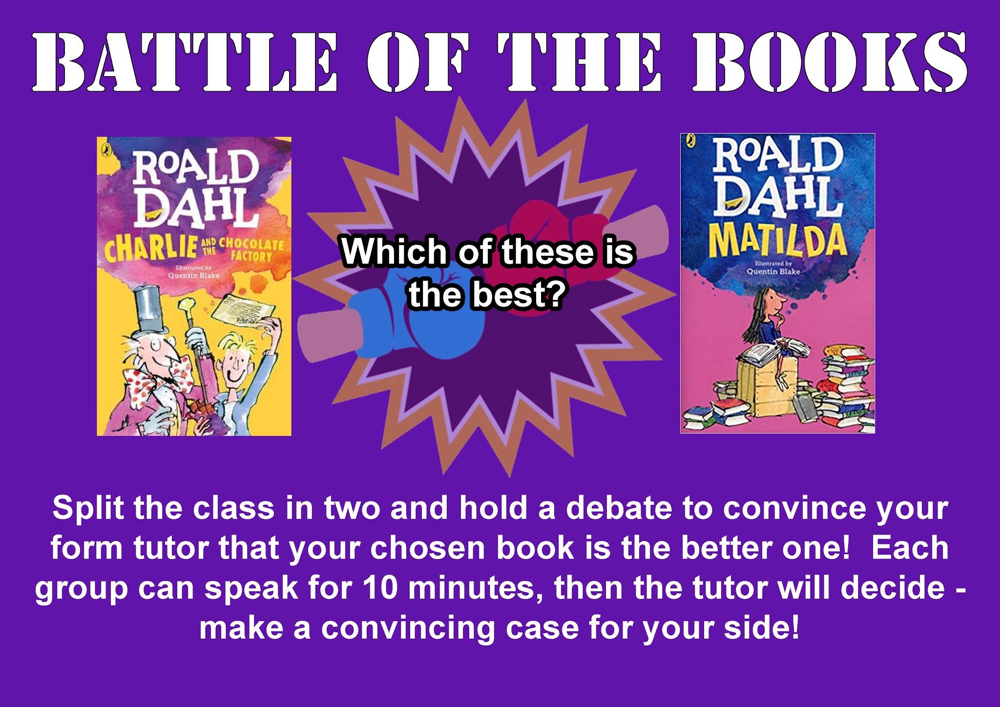 You may have done this in form time already this week, but if not, have a chat with a friend or two who have also read both books, which one did each of you prefer and why?